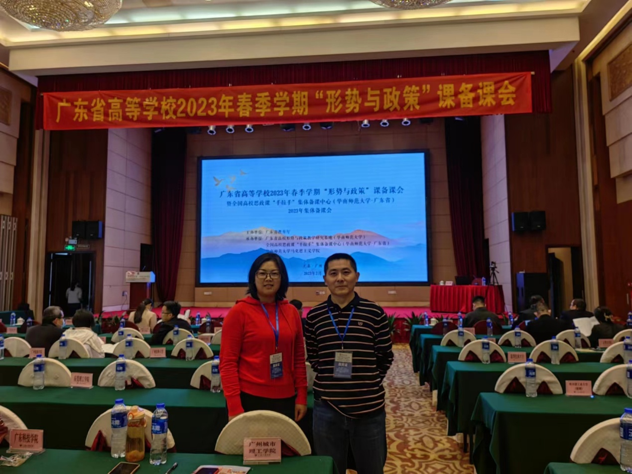 本网讯(记者 蒋一娴)3月26号,省高等学校2023年春季学期“形势与政策”课备课会暨全国高校思政课“手拉手”集体备课中心2023年备课会在广州三寓宾馆会议厅举行,广东省160所高校,308名教师参加,我校马克思主义学院派两位教研室副主任王文彦、蒋一娴参加备课会。