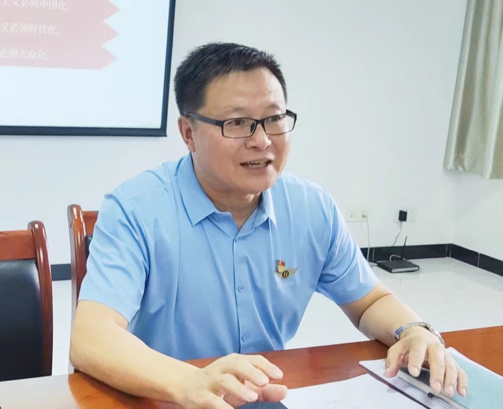 本网讯(记者 邹春梅)7月6日下午,马克思主义学院党总支在行政楼510党建活动室召开学习会。马克思主义学院党总支书记李军以《在新时代伟大实践中推进马克思主义中国化时代化》为题,讲授专题党课。