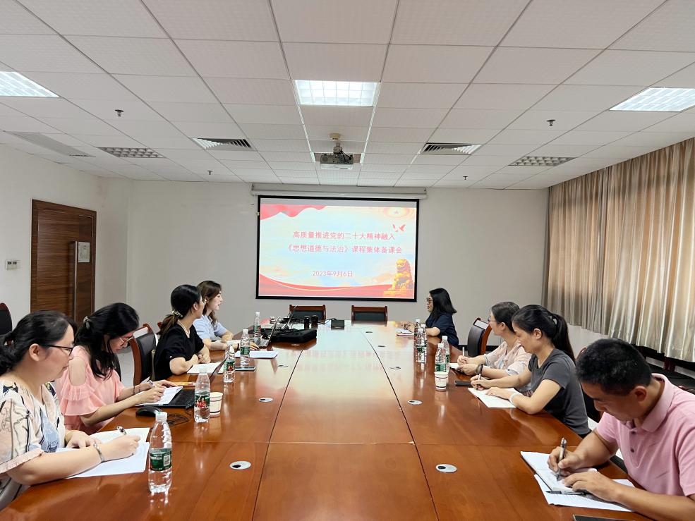 本网讯(记者 全春丽 陈姣娣)为深入学习贯彻党的二十大精神,扎实推动党的二十大精神融入思政课教学,全面提升思政教师的教学质量和育人能力,9月6日下午,《思想道德与法治》课程全体授课教师及学院相关负责人于行政楼510召开集体备课会,会议由教研室副主任蔡蓉老师主持。