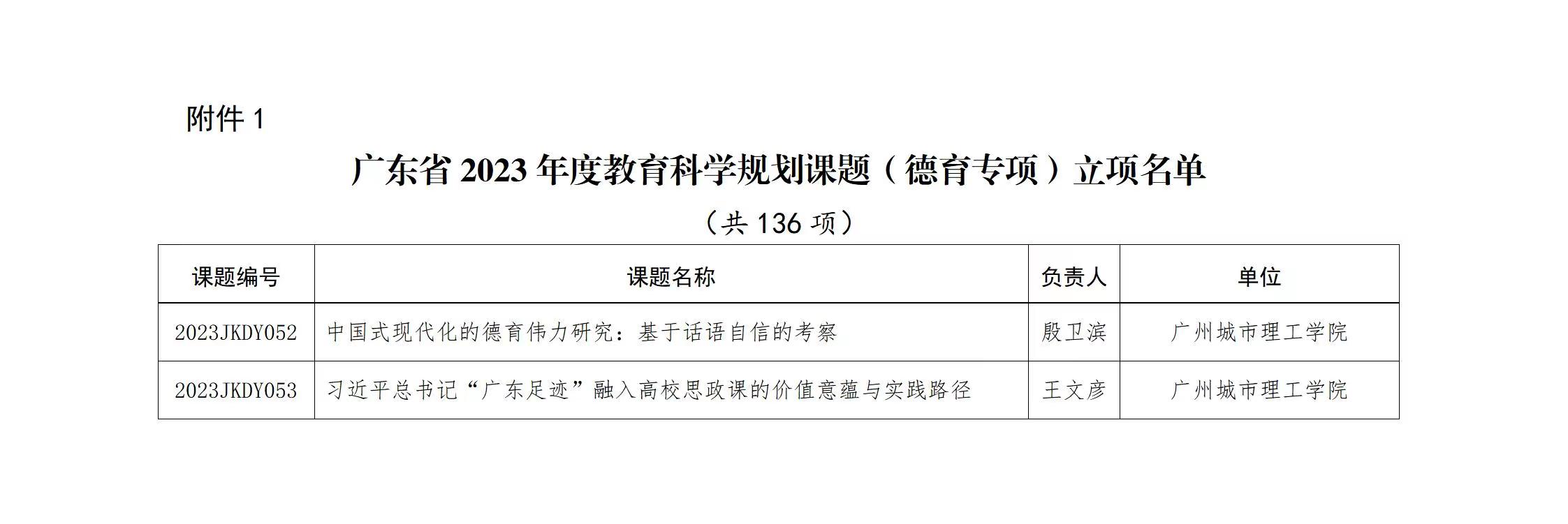 广东省2023年度教育科学规划课题(德育专项)公布 我院教师申报的两项课题均获批立项