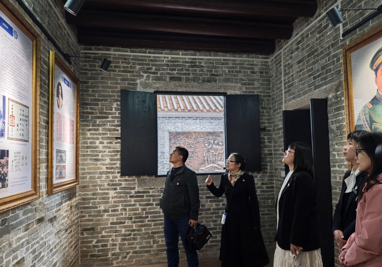 马克思主义学院教师、学生和花都区博物馆工作人员首先参观了位于广州市花都区新华街三华村的集之徐公祠。集之徐公祠是中国同盟会番花分会旧址,它见证了“番花同盟分会”秘密召开会议的革命经历和“三·二九”广州起义时期16位三华村黄花岗烈士的英勇牺牲。在邹春梅老师和学生的细致讲解中,全体成员重温1911年革命的烽火岁月,缅怀烈士的英雄事迹,领悟振兴中华、沥血黄花的革命精神。