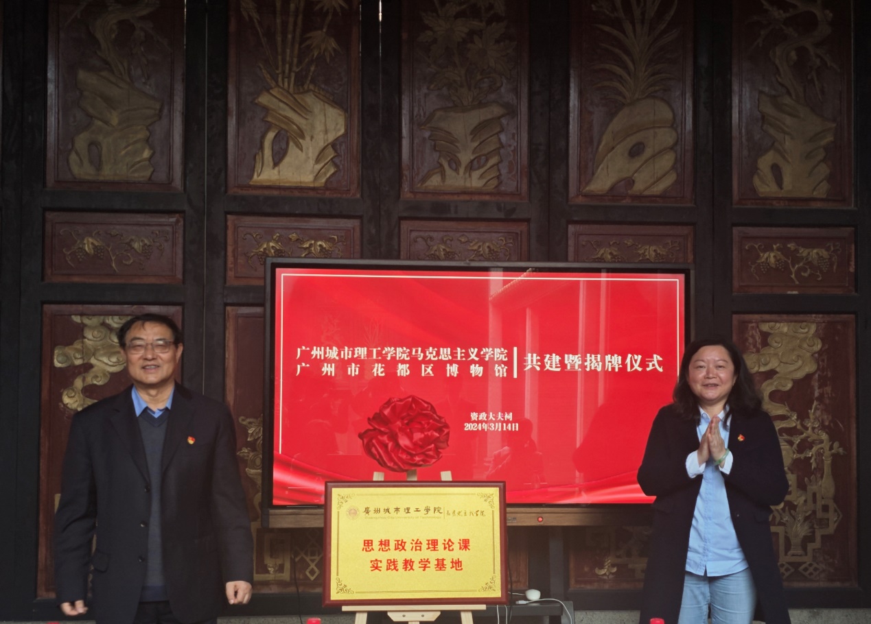 为充分发挥“大思政课”实践教学基地良好的育人功能,马克思主义学院与广州市花都区博物馆决定共建思想政治理论课实践教学基地,并于3月14日下午举行签约、揭牌仪式。马克思主义学院院长、党总支书记吕志,副院长王文彦和花都区博物馆贺安馆长、程军副馆长出席仪式,教研室副主任、教师代表和博物馆工作人员50余人参加揭牌活动。吕志与贺安签订共建思想政治理论课实践教学基地协议书并一起揭牌。协议明确了双方将在课程开发、教学资源共享、师资培训、学生实践活动等多个方面将展开全面合作。随后,吕志介绍了马克思主义学院的基本情况,对学院的教学资源、教学优势、教学特色进行了详细说明,并表示花都区博物馆拥有丰富的文化遗产资源,是进行爱国主义教育的良好场所,通过与花都区博物馆共建思政课实践教学基地,可将珍贵的文化资源转化为思政课教育的生动教材,使学生深刻体会到中华优秀传统文化。