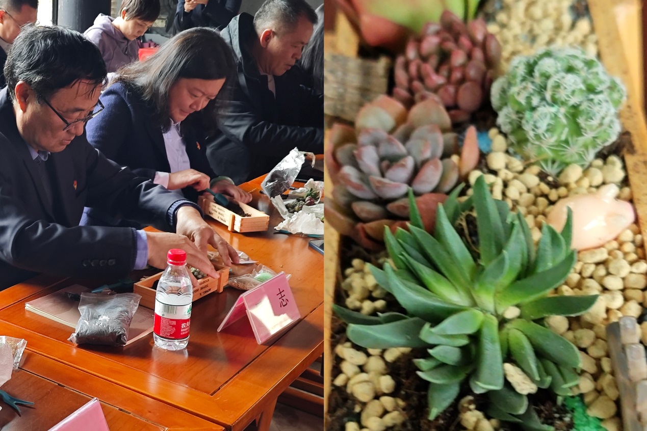 参会老师共同动手种植盆栽(曹明宇 摄)