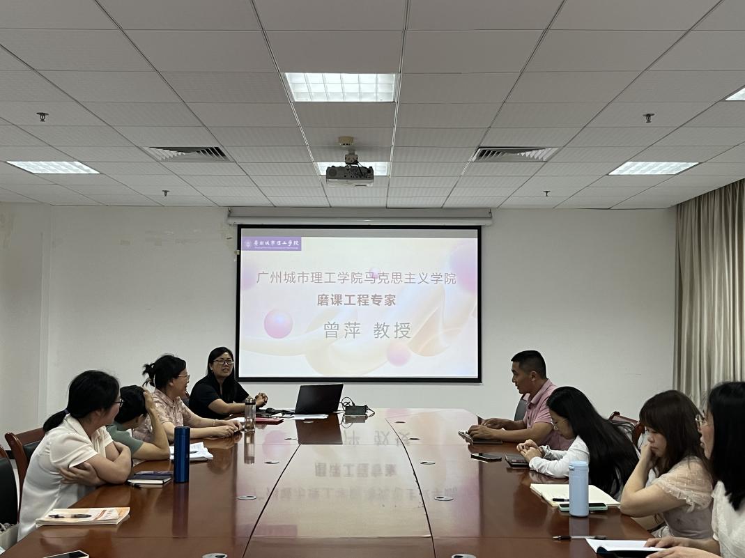 本网讯 (记者 刘梅)为培养本领过硬的“形势与政策”课程师资队伍,打造优质好课,提升教育教学实效,5月23日下午,马克思主义学院形势与政策教研室邀请广东药科大学马克思主义学院曾萍教授于行政楼510室为“形势与政策”教学团队进行磨课指导,并作“形势与政策”虚拟教研室和一流课程建设经验分享。会议由马克思主义学院形势与政策教研室副主任蒋一娴主持,学院副院长王文彦出席会议,“形势与政策”课程组教师参与会议。