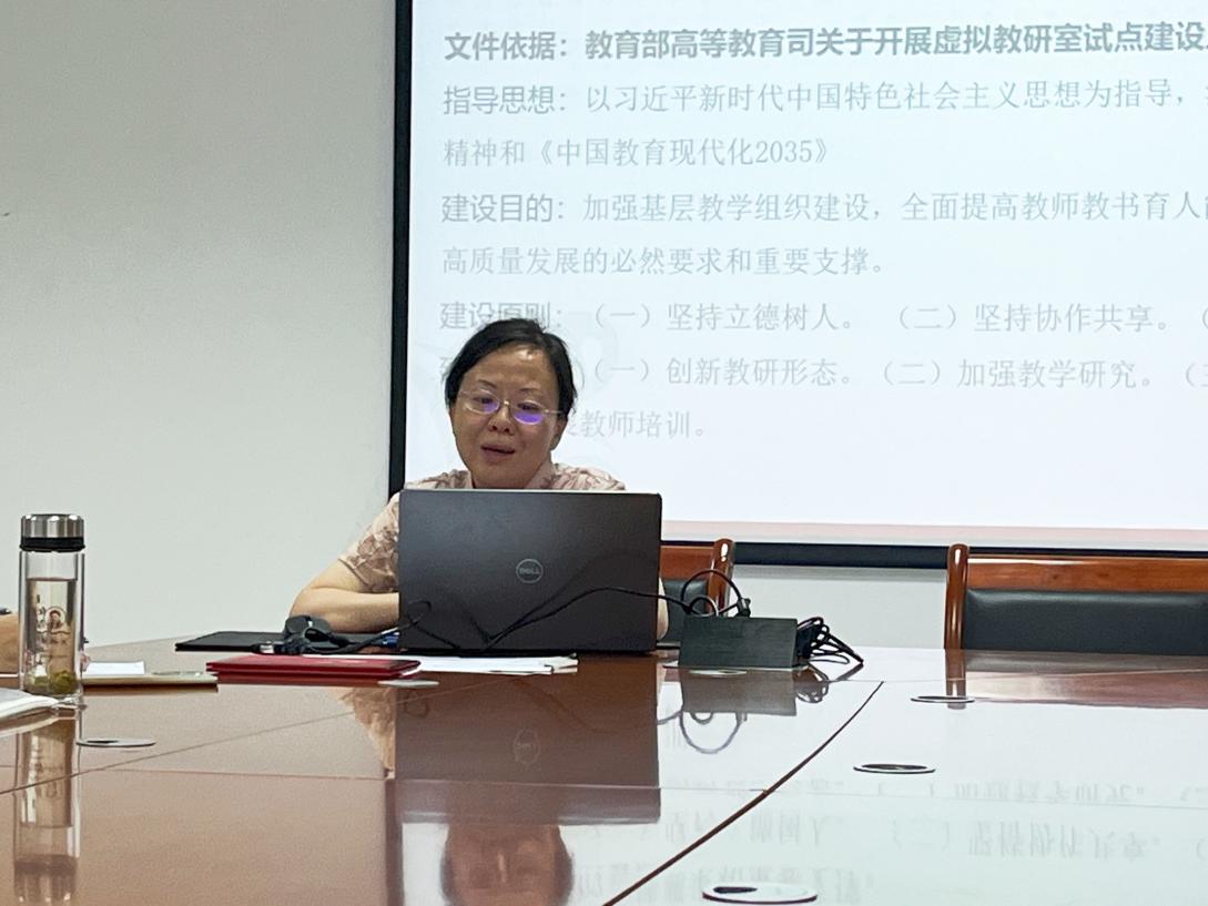 曾萍教授作虚拟教研室建设经验分享(刘梅 摄)