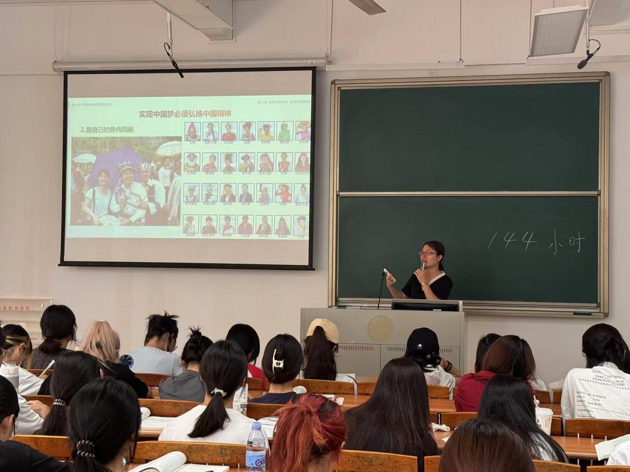 黄忠瑶老师围绕“弘扬中国精神”这一核心主题,从“中国精神的内涵”“中国共产党的精神谱系”“实现中国梦必须弘扬中国精神”等三个方面进行了深入浅出的讲解。她结合丰富的历史素材和生动的现实案例,不仅阐述了中国精神的理论基础,还着重强调了在新时代背景下弘扬中国精神的重要意义。课上,黄忠瑶老师将理论讲授与课堂互动紧密结合,通过提问、讨论等多种形式,引导学生积极参与,深入思考。她以饱满的热情和扎实的理论学识,将中国精神这一宏大主题讲解得既深刻又生动。