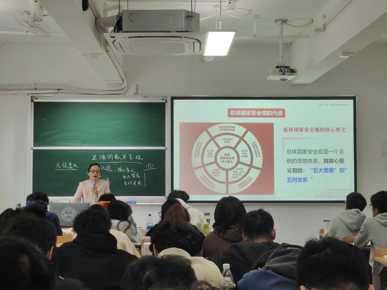 本次示范课由马克思主义学院邹春梅老师主讲,邹老师深耕思政教学领域多年,教学经验丰富,在课程设计、教学方法运用上独具匠心。课程伊始,邹老师充分发挥学生主动性,以学生分享的形式直接引入授课主题——维护和塑造国家安全。讲解过程中,邹老师打破传统 “灌输式” 教学模式,穿插小组讨论、案例分析等多元互动环节,引导学生们围绕 “生活中哪些行为可能会危害国家安全” 话题各抒己见,现场气氛十分热烈,极大地激发了学生的学习兴趣。随着课程的深入,邹老师更是利用多媒体资源将晦涩难懂的知识点进行拆解,着重对总体国家安全观的科学内涵以及新时代应该如何构建新安全格局做了全面的讲解。整堂课在轻松活跃的氛围中结束,不仅帮助学生从理论层面上认识到维护国家安全的重要性,更是为学生树立的国家安全意识起到了积极作用。