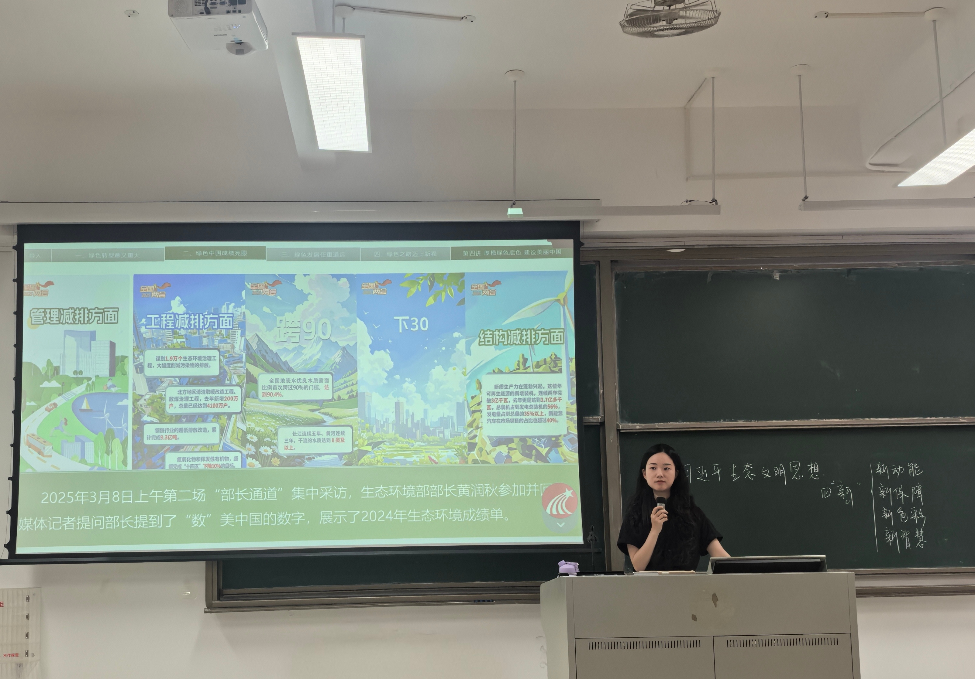 4月18日上午,罗文嘉在A5-206课室为2024电气工程及其自动化1班2班讲授了《厚植绿色底色 建设美丽中国》公开课。课上,罗老师以新能源汽车发展为例,展现我国绿色产业的飞速进步,见证了我国在该领域的加速度。为了让学生更深刻理解生态重要性,罗老师展示了学校图书馆举办的“地球一小时”倡议活动,呼吁大家节约能源,从身边的小事做起,让学生明白环保与每个人息息相关;提及广东花都湖国家湿地公园,展现生态保护与修复的成果,激发学生关注身边一草一木的兴趣,在生活中发现生态之美。此次公开课,通过丰富案例和数据,让学生认识到绿色转型的重大意义、我国取得的亮眼成绩及面临的挑战,增强了学生的环保意识,激励大家为建设美丽中国贡献力量。