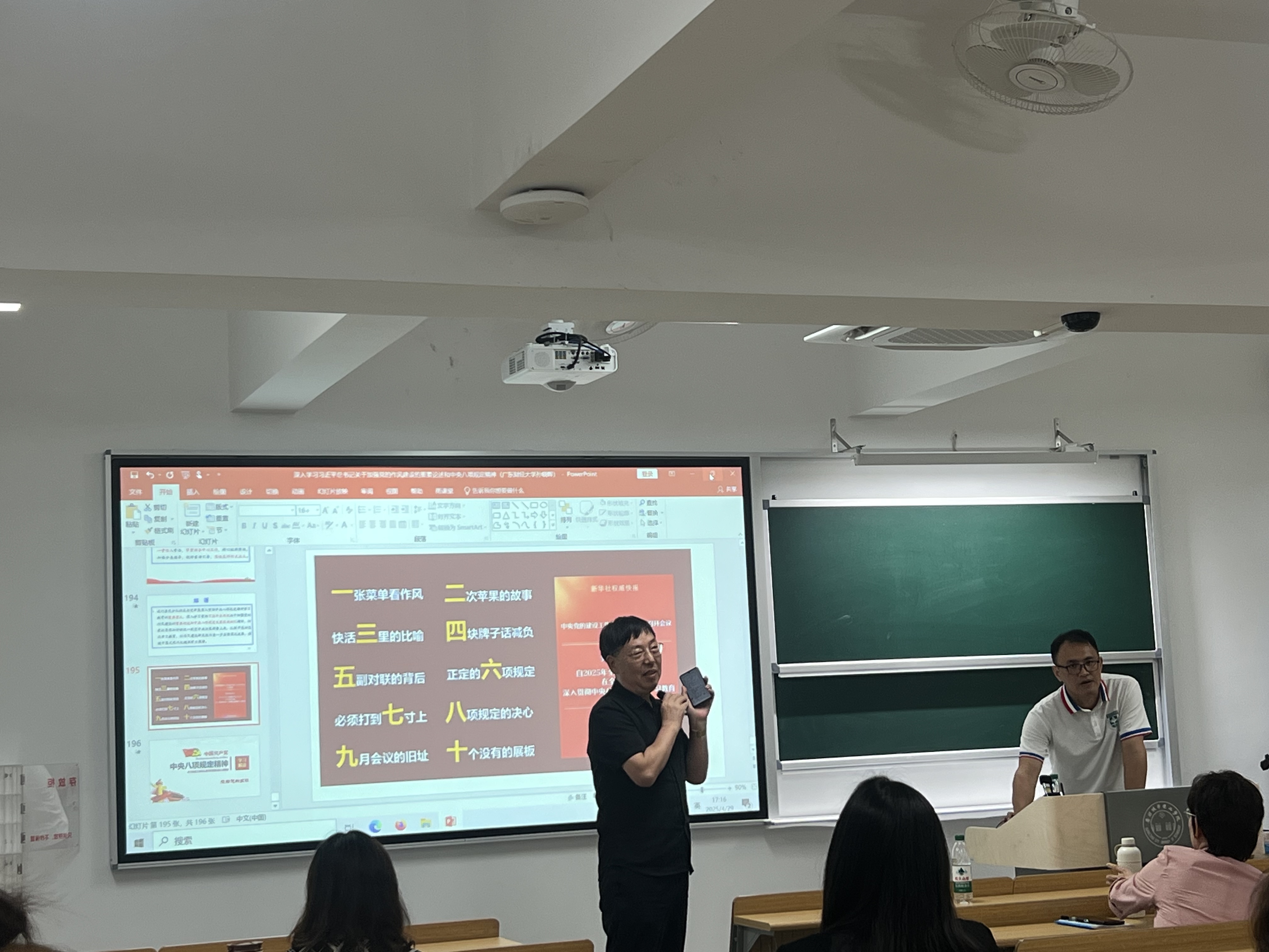 本网讯(记者 贾陶然)为深入学习贯彻习近平总书记关于加强党的作风建设的重要论述和中央八项规定及其实施细则精神,推动中央八项规定精神学习教育走深走实,4月29日,马克思主义学院邀请广东财经大学马克思主义学院副院长孙晓晖教授于A12-510,作主题为《深入学习习近平总书记关于加强党的作风建设的重要论述和中央八项规定及其实施细则精神》的讲座。本次讲座由吕志院长主持,学院全体教职工参加讲座。