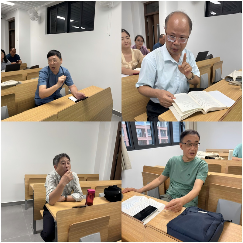 与会教师重点探讨如何凸显本课程与《毛泽东思想和中国特色社会主义理论体系概论》《习近平新时代中国特色社会主义思想概论》两门课程的差异与侧重点。重点讲述了这三章教学活动中的课堂导入、师生互动主题、课件修改、课堂板书等内容;深入讨论了教材中这三章的重点、难点、主线等。就这些问题,赵军祥教授、李益杰教授、刘海欧教授和张忠民博士分别提出教学建议,教师间进行了深入交流和探讨,集思广益,提高了这三章的教学设计水平。
