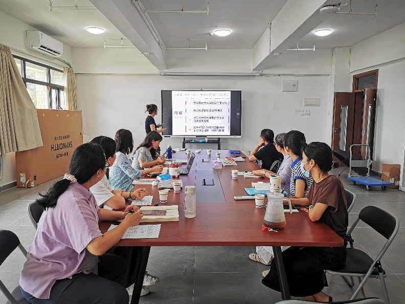 本次会议邀请广州商学院马克思主义学院院长杜奋根教授担任指导专家。会议由教研室副主任黄忠瑶主持。教学质量提升会以说课的方式进行,针对课程重要章节进行教学内容介绍,重点展示课堂导入、师生互动等教学设计环节。王田田老师率先进行《铸牢中华民族共同体意识》的“第六讲-中华民族意识觉醒及中华民族新选择”,赵晶老师则针对“第四讲-中华民族空前繁盛及中华民族内聚发展”,曾丽华老师聚焦“第五讲-中华民族大统合及中华民族格局底定”。