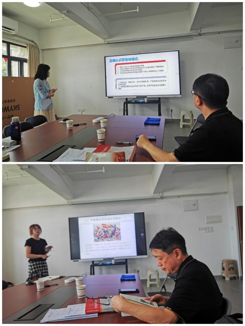 宋璐瑜老师和张晓玲老师分别对《社会主义发展史》的“专题四-社会主义从一国到多国发展与苏联模式”和“专题五-世界社会主义的曲折与奋起”进行说课展示。