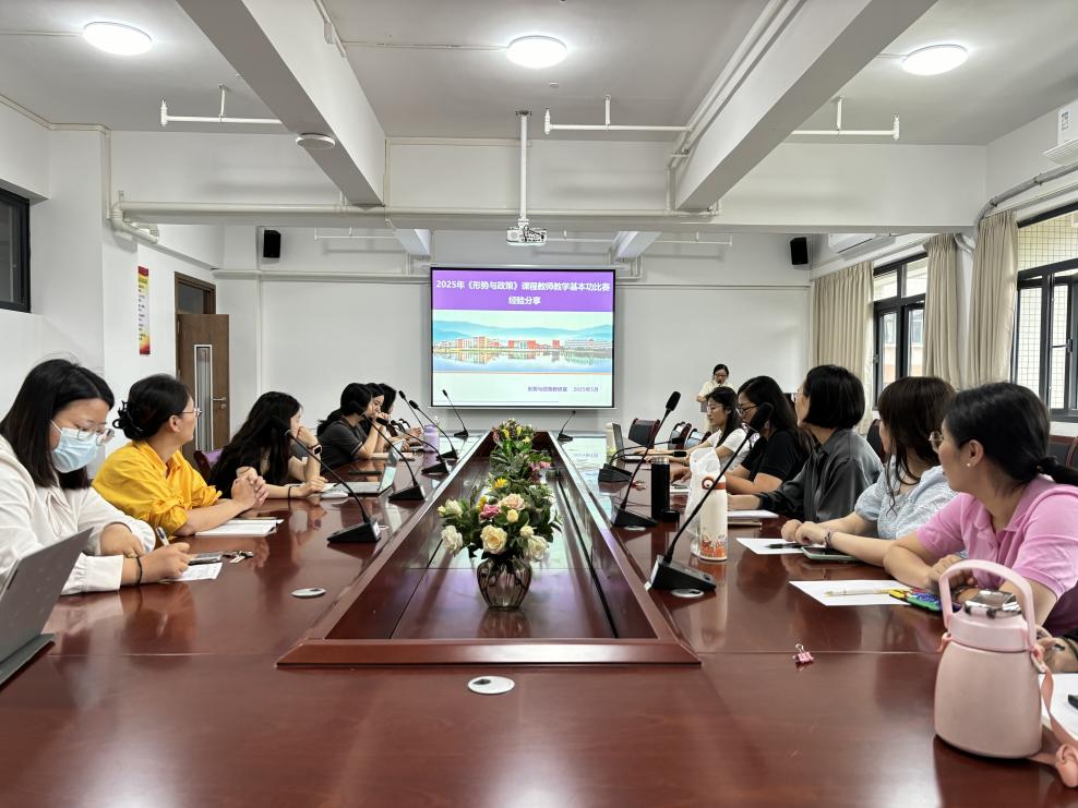 本网讯(记者 张小容)为有效提升教师教学能力与竞赛水平,营造“以赛促教、以赛促学、以赛促改”的积极氛围,形势与政策教研室于5月27日在A12-802成功举办了一场精彩纷呈的教学比赛经验分享会。本次分享会邀请本学期代表学院参加广东省高校思政课教师教学基本功比赛、学院教学基本功比赛以及观赛的优秀教师代表,汇聚智慧,倾囊相授。此次会议由教研副主任蒋一娴主持,课程组教师均积极参与其中。