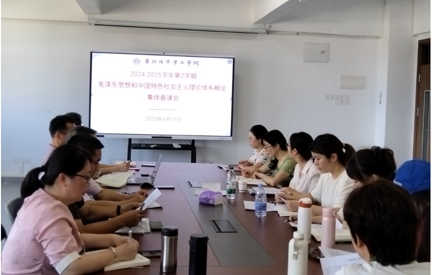 本网讯(记者 吴江六)6月11日上午,《毛泽东思想和中国特色社会主义理论体系概论》课程组全体教师于A12-803召开了集体备课会与期末考务工作会议。本次会议聚焦提高命题质量,打好提升学生卷面成绩攻坚战主题,旨在进一步提升课程教学质量与效果。会议由教研室邹剑波副主任主持。