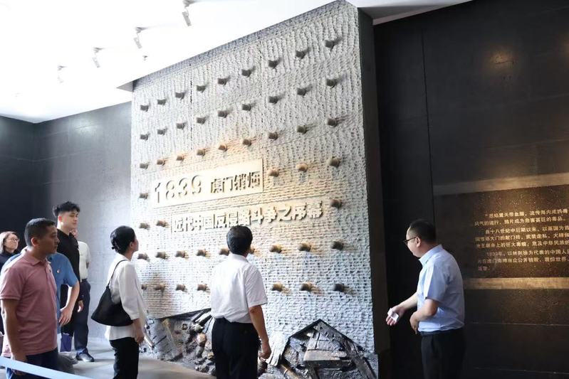 现场交流与参观虎门销烟展览馆(曹明宇 摄)