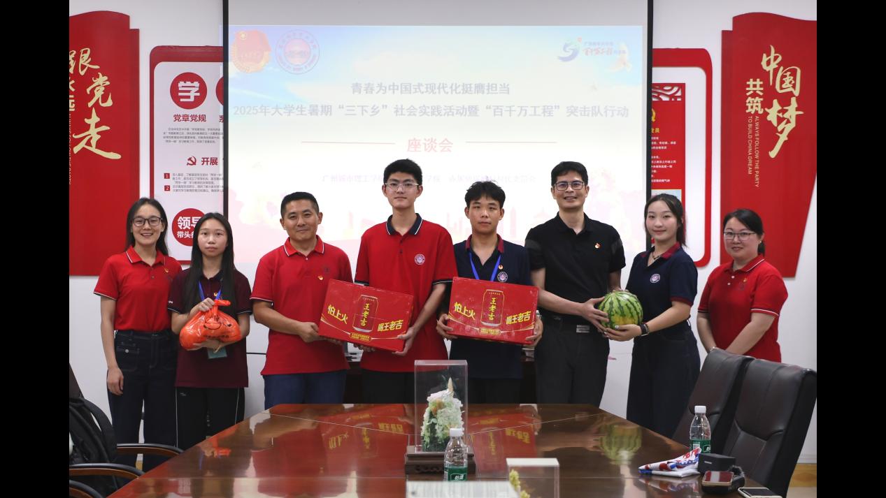7月7日上午,国际商学院党总支副书记、副院长梁伟滔和马克思主义学院党总支副书记、副院长王文彦专程赴瑞岭村亲切慰问壮志不减实践团师生,送去学院关怀与慰问物资。期间,学院领导与当地村委负责人、壮志不减实践团代表围绕实践进展、乡村需求及未来合作方向深入交流举行了座谈会,学院领导肯定了壮志不减实践团取得的阶段性成果并勉励学子深耕实践、助力乡村振兴,同时表示:未来需要不断提升创新力,跟上时代发展,善于借助AI等工具去解决问题。此次慰问与座谈,既彰显了学院对实践育人工作的高度重视,也进一步加强了校地联系。