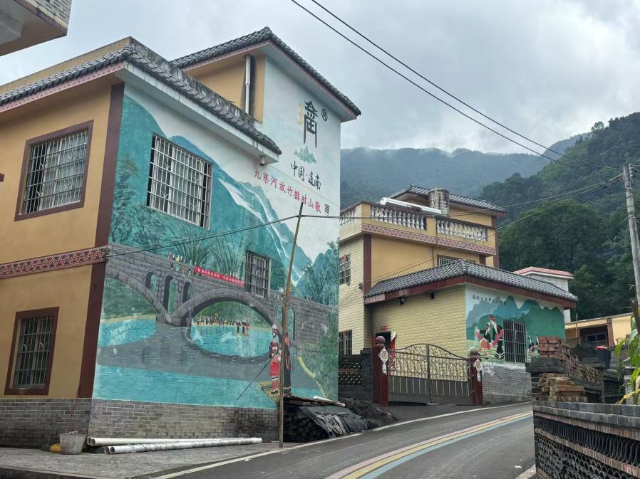 充满瑶族风情的墙绘 (杨美宜 摄)