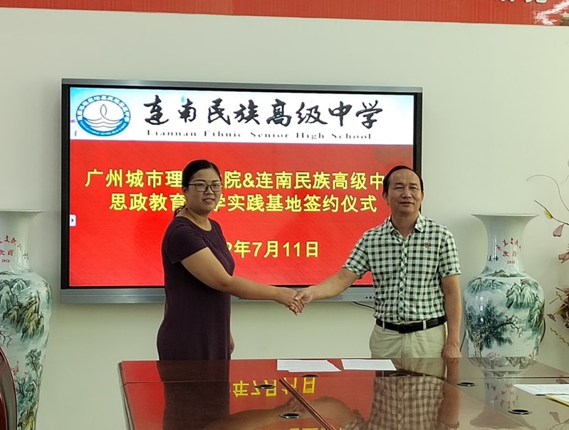 蒋一娴作为学校代表与连南民族高级中学签订思想政治教育实践基地协议(黎绮云 摄)