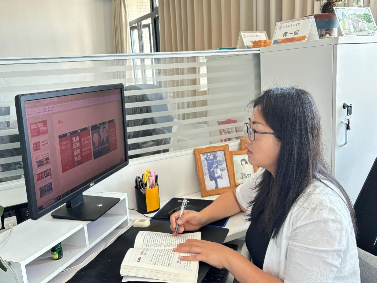 工作日即使没有教学任务,蒋一娴也会经常泡在办公室里。对于这种旁人眼中的“内卷”,她却笑着说:“我是后来者,需要加倍努力追赶。”回顾教育生涯,“守正创新”是她贯穿始终的主线。她曾表示:“思政教育者要做提灯人,既要照亮学生前行的道路,更要点燃他们心中的理想火种。”在这个快速发展的时代,蒋一娴用脚步拓展教育的广度;以匠心挖掘育人的深度。蒋一娴的故事告诉我们,真正的教育,从来不是单向的知识灌输,而是灵魂与灵魂的碰撞,是生命与生命的相互照亮。
