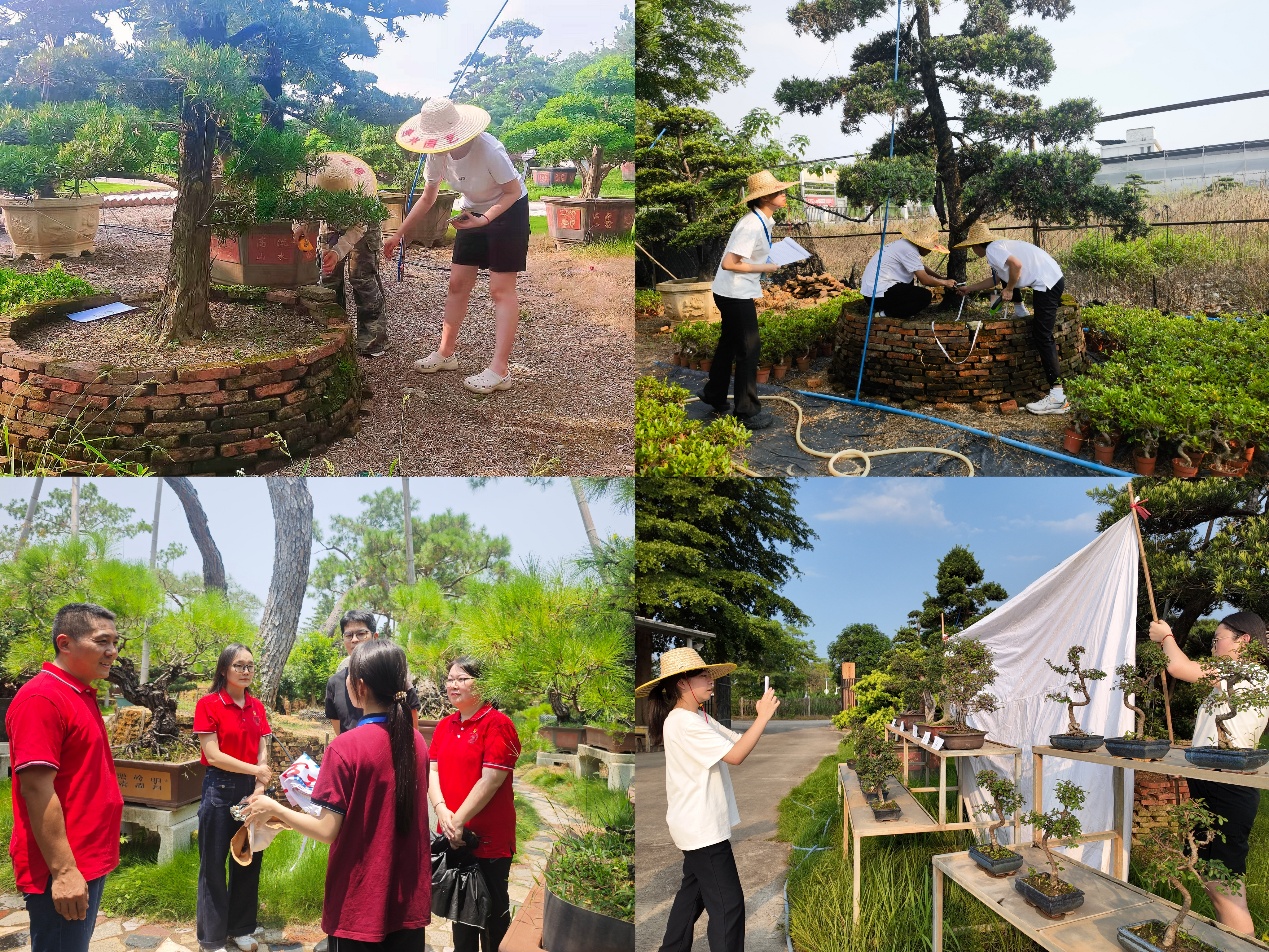 实践团携相机、无人机等专业设备,在烈日骄阳下深入农户园林,系统拍摄并整理100株代表性盆景的资料,包括多角度取景、记录艺术形态与养护信息、测量树高和胸径数据,为搭建线上展示平台奠基。国际商学院党总支副书记梁伟滔和马克思主义学院副院长王文彦肯定了实践团取得的阶段性成果并勉励学子深耕实践、助力乡村振兴。
