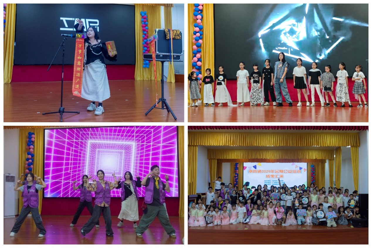 在热烈的掌声中,七彩阳光实践团用舞蹈串烧为成果汇演画上圆满句号。这不仅是一场演出,一次“三下乡”社会实践,十天丰富多彩的公益课堂,展现了高校服务社会的责任与担当,亦是赋能乡村振兴、乡村文化教育的实践之旅。汇演结束后,家长们纷纷在微信班群里说道:“感谢各位老师用专业与温度点亮了这个夏天,让孩子们在兴趣中收获成长,在成长中感受快乐!”声乐班曾宝怡的家长更是表示课程结束后,“孩子哭了两晚,说还想学。”