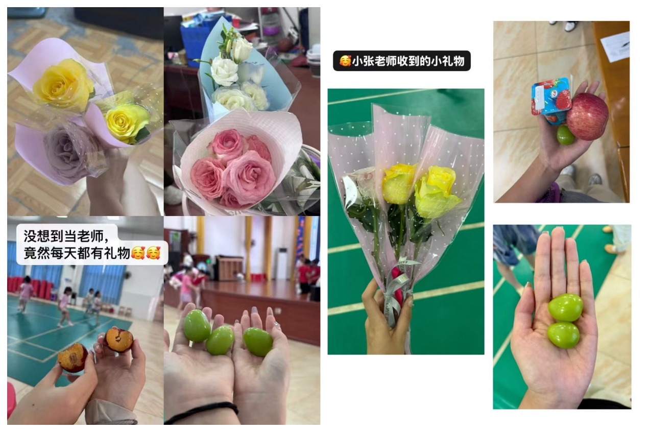 课程结束后,舞蹈组的老师们收获了学生赠送的鲜花与小糖果;声乐课上的小朋友向蒋一娴老师赠送了自己亲手制作的蝴蝶折纸;形体模特走秀课的小朋友给予了黎绮云老师大大的拥抱。声乐班曾宝怡的家长更是表示课程结束后,“孩子哭了两晚,说还想学。”