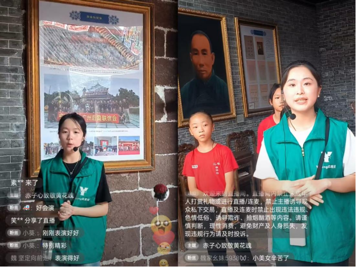 宣讲中,Young实践团同学结合实地场景,将黄花岗起义中三华村英烈舍生取义的故事娓娓道来。同时,为让线上线下的观众在直观形象的氛围中受到感染和熏陶,Young实践团在祠堂内进行了情景剧演绎,将三华村人徐维扬组织“选锋队”队员在集之徐公祠前发动起义、中国近代民主革命家黄兴先生秘密商讨起义、革命烈士慷慨赴死等三幕情景进行了历史再现。
