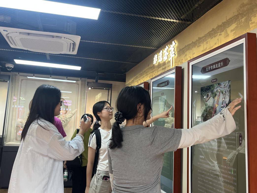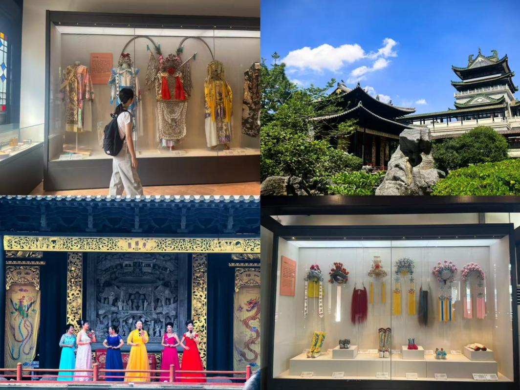 实践团成员首先走进粤剧艺术博物馆,馆内岭南传统园林建筑、水上戏台广福台、陈列展厅无不在诉说着非物质文化遗产--粤剧艺术的历史和记忆。在博物馆内,学生们被引导参观了粤剧服饰、道具以及介绍粤剧历史和艺术特色的展区,并对物馆内的木雕、砖雕和陶塑艺术所展现粤剧武行故事和金漆木雕技艺赞叹不已。他们还特别在广福戏台观看了粤剧表演,体验了传统戏曲的魅力,对粤剧这一非物质文化遗产有了更深入的了解,也对岭南文化的独特魅力有了更直观的感受。