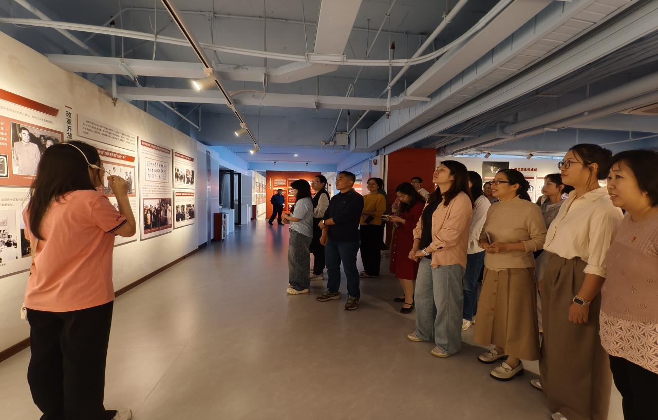 全体教师在贾陶然老师讲解下参观基地展览(张秋爽 摄)