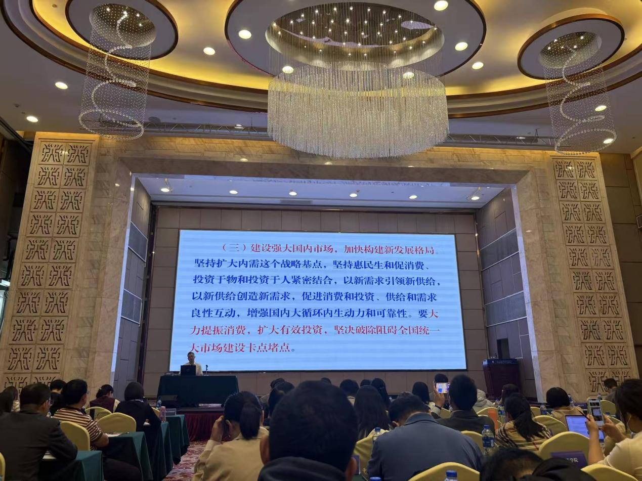 上午会议伊始,华南师范大学马克思主义学院党委书记胡国胜教授以“续写中国奇迹新篇章——党的二十届四中全会精神解读”为题作报告。胡教授从《中共中央关于制定国民经济和社会发展第十五个五年规划的建议》基本情况切入,深入剖析其时代背景与战略考量。随后,对规划建议的总体判断、指导方针、主要目标及战略任务进行全面系统解读,使参会教师对党的二十届四中全会精神有了更深刻、系统的认识。紧接着,华南师范大学马克思主义学院副院长蒋积伟教授以“2025年秋季形势与政策课教育教学辅导”为主题进行汇报。蒋教授首先强调“形势与政策”课程在高校思政与政策领域的重要地位,指出其是引导学生了解国内外形势、把握时代脉搏的关键窗口,也是培养学生正确世界观、人生观和价值观的重要阵地。而后,依据2025年下半年高校“形势与政策”课教学要点,结合丰富教学案例与实际经验深入讲解。同时特别指出,教学中要紧密结合党中央重要会议与精神,引导学生深刻认识其重大意义,避免理论学习“庸俗化”。