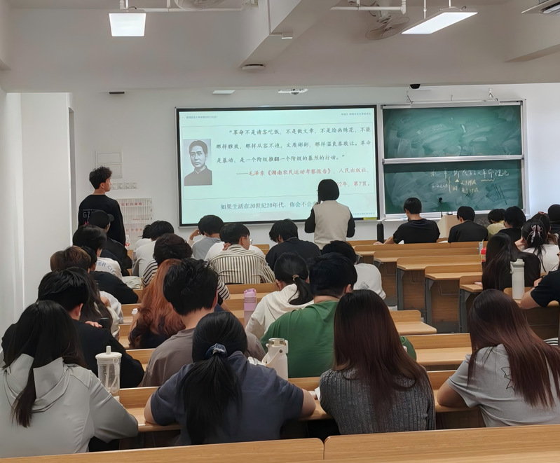 课堂讲授环节,欧阳老师紧扣“近代中国国情”这一教学重点,结合具体历史背景展开讲解。她以“给八国联军带路的人是汉奸吗?”这一具有思辨性的话题为切入点,结合翔实史料,深入分析近代中国的社会性质、主要矛盾与时代特征,把抽象的理论知识融入具体的历史情境中,让思政课堂既有理论厚度,又贴合学生认知,更具说服力和感染力。