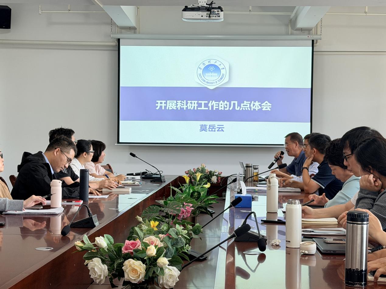 莫岳云教授还就如何平衡教学与科研的关系、如何提升科研成果的学术影响力等问题与与会教师进行了深入交流和探讨。他鼓励教师们要勇于探索、敢于创新,将科研与教学紧密结合,以科研促教学,以教学带科研,形成良性循环。