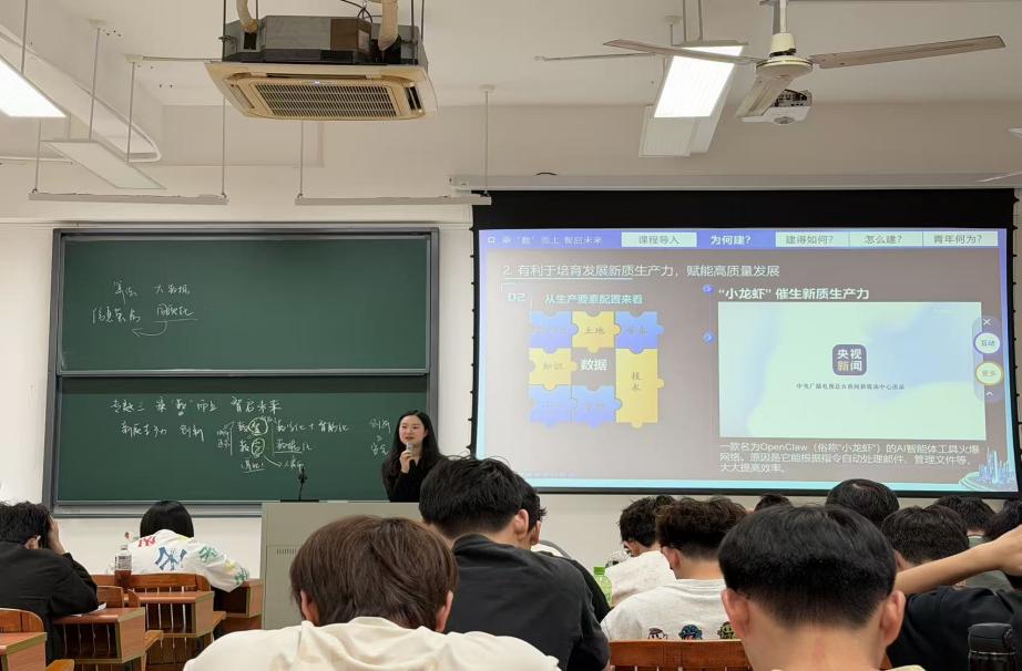 本网讯(记者 罗文嘉)为深入落实立德树人根本任务,创新思政课教学形式,提升思政课堂吸引力与实效性,3月31日,我院罗文嘉老师开展《乘“数”而上 智启未来——深入推进数字中国建设》主题公开课,2023级新能源科学与工程2、3班同学参与学习。